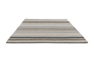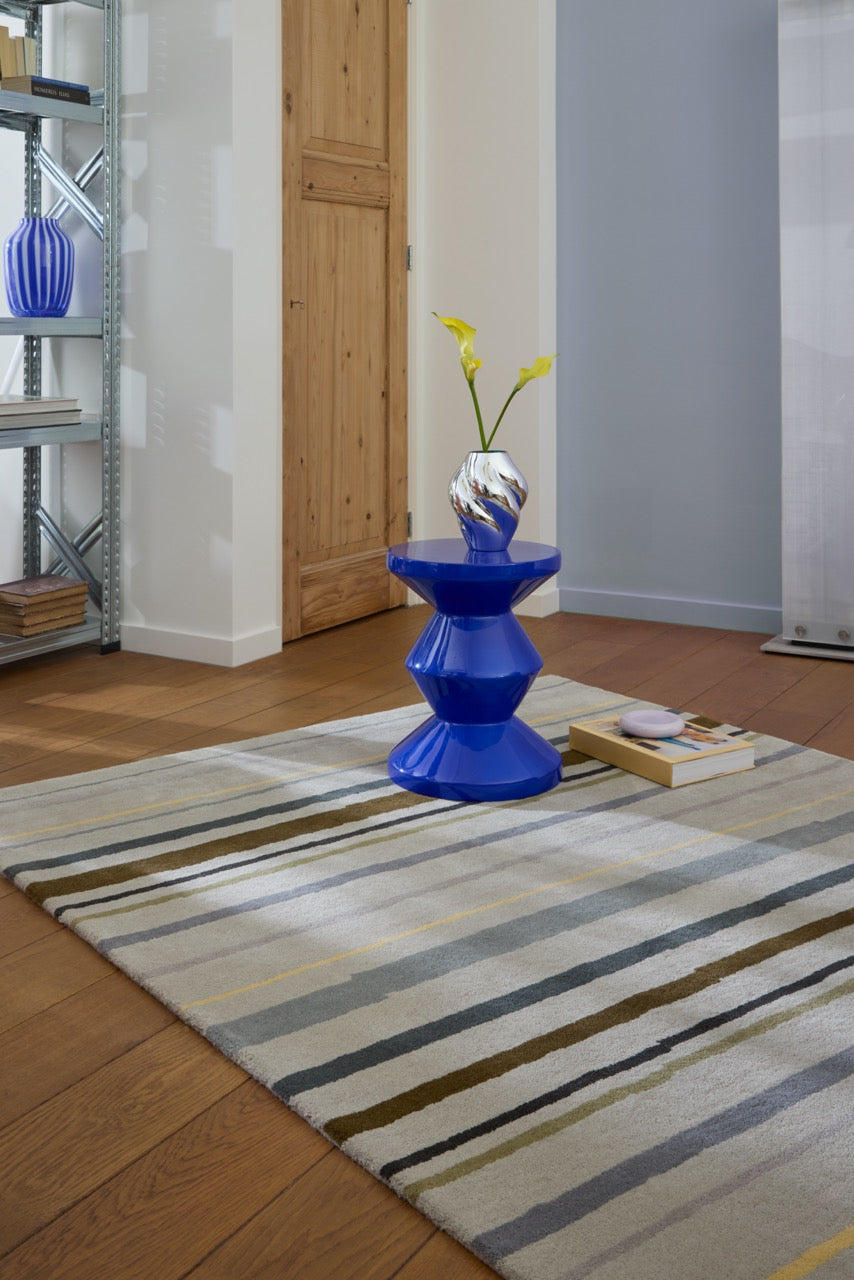 Der Decor Shift Steel Metal 089904 von Brink & Campman ist ein Teppich mit urbanem Charakter. Aus 100 % reiner Wolle handgetuftet, ruht er auf einem grauen Fond, den horizontale Streifen durchziehen. Das Zusammenspiel von kühler Stahl-Optik und warmer Wollstruktur macht ihn zu einem Designobjekt, das sowohl Klarheit als auch Behaglichkeit vermittelt.