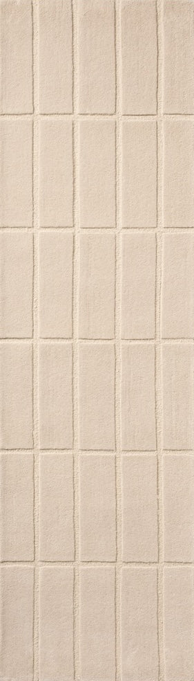 Der Teppich besteht aus 100 % Wolle und besitzt eine dichte, angenehme Oberfläche. Die erhabene Gitterstruktur verleiht Tiefe und Textur und reagiert sanft auf das Licht. Dadurch entsteht eine handwerkliche, fast skulpturale Wirkung, die sich besonders gut in minimalistischen, skandinavischen oder Japandi-Wohnstilen entfaltet, aber auch in ausdrucksstärkeren Interieurs als ruhiger Gegenpol funktioniert.