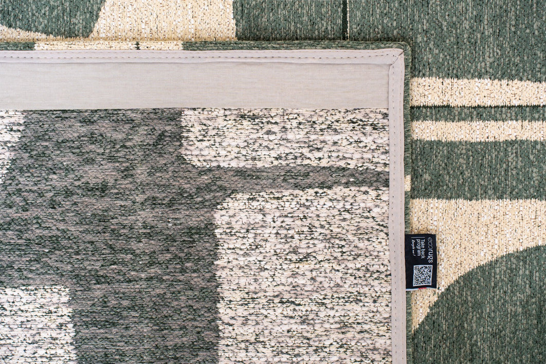 Made from durable PET fibers, it not only provides a soft underfoot but is also easy to clean, keeping your home stylish and practical. The geometric and abstract patterns in soothing green tones create a calming atmosphere, enhancing your decor and adding a contemporary touch.