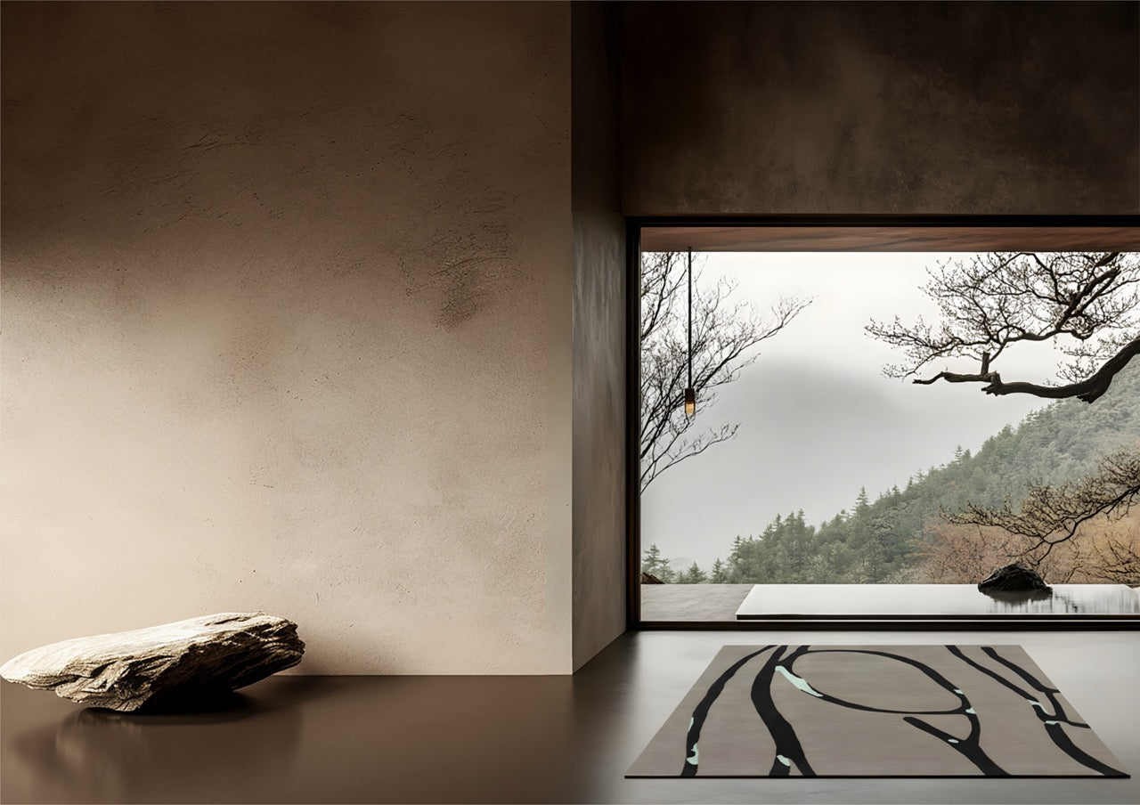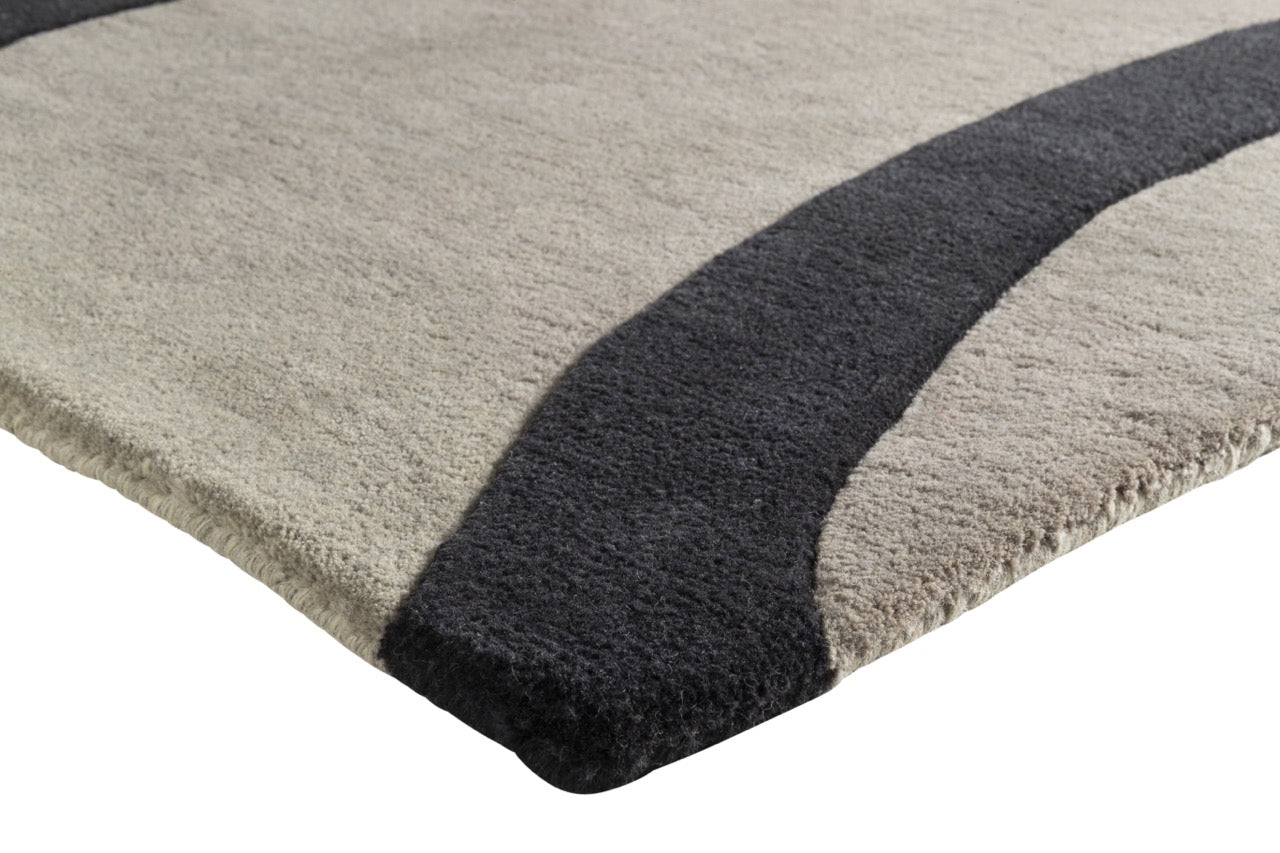 Chaque tapis est tufté à la main en Inde en pure laine, offrant une densité soyeuse et une qualité artisanale exceptionnelle. Sa profondeur graphique et sa palette neutre lui permettent de s’intégrer harmonieusement dans un intérieur moderne, un espace d’art ou un appartement au style architectural.