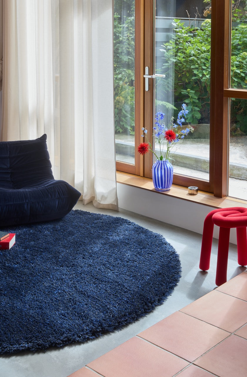 Parfait avec du bois ou du cuir, ce tapis met en valeur les matières naturelles. Associez-le à des tons neutres pour créer du contraste ou à d’autres nuances de bleu pour une atmosphère harmonieuse.