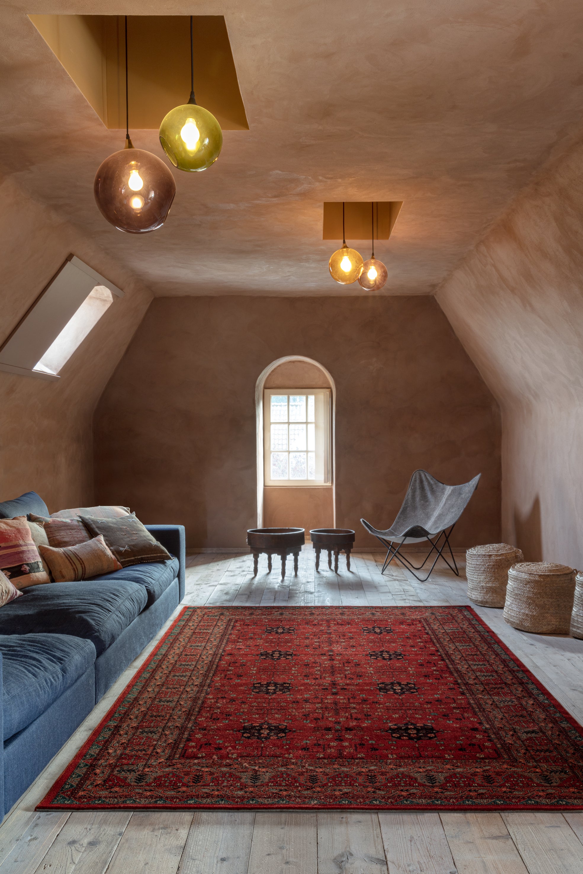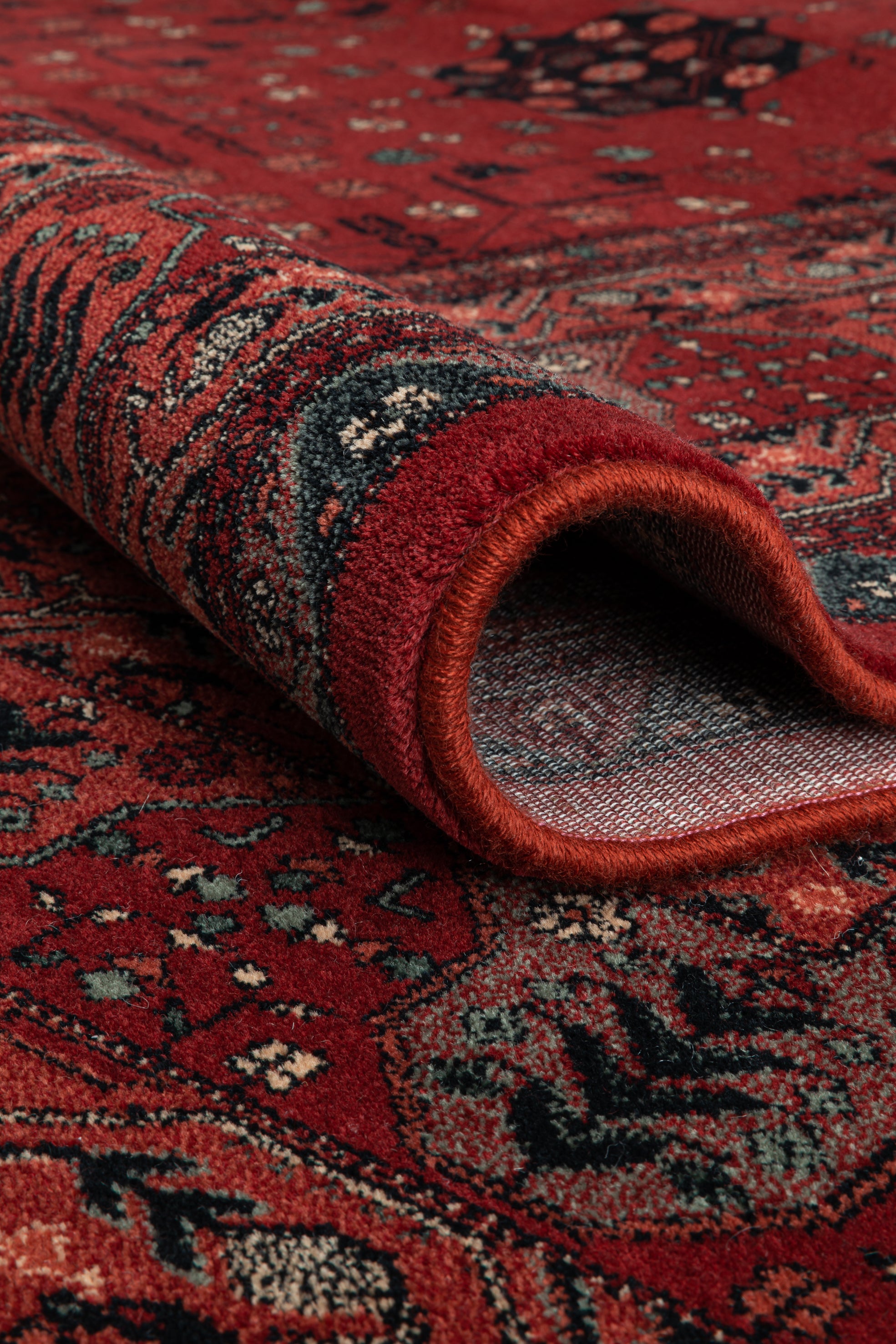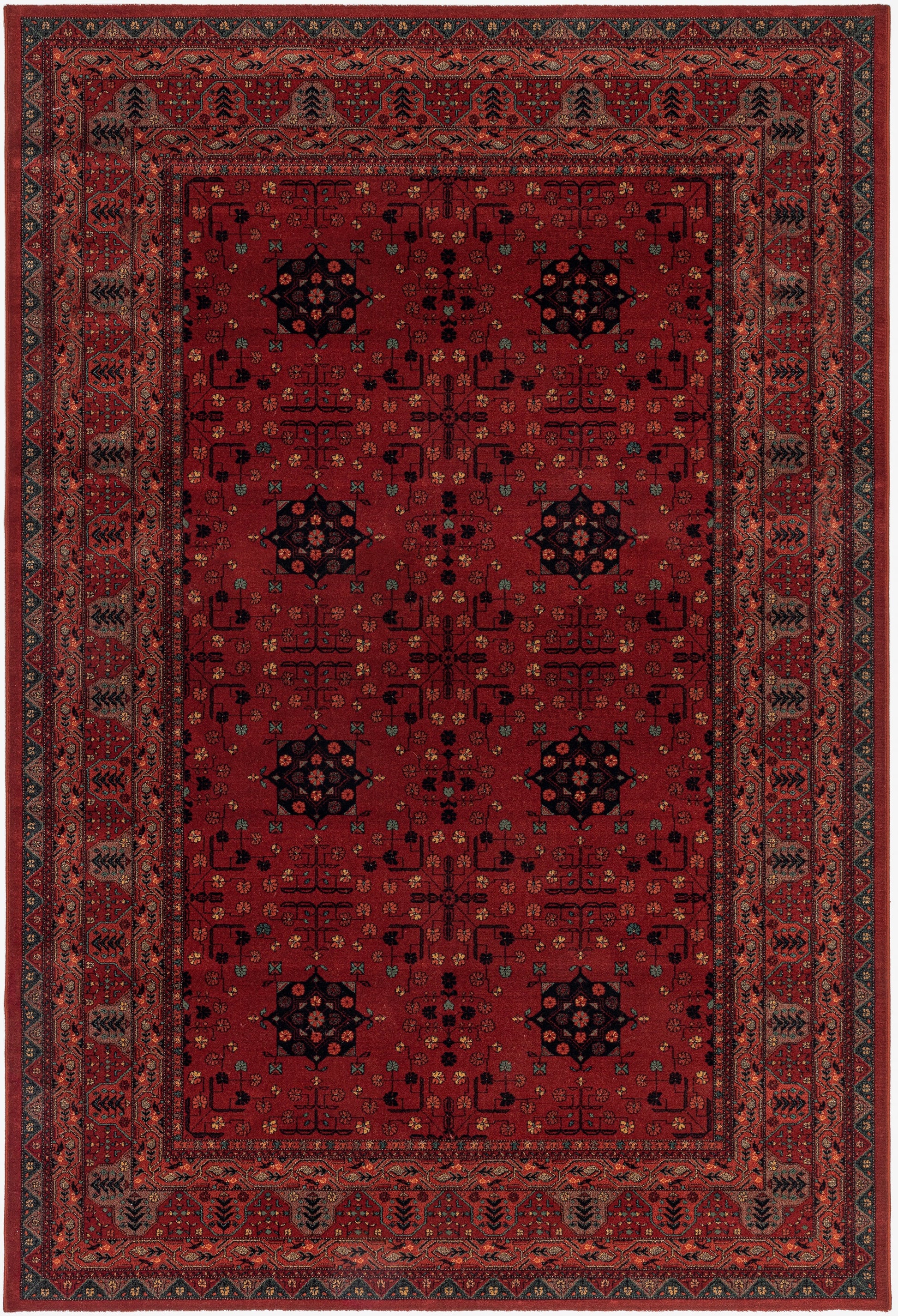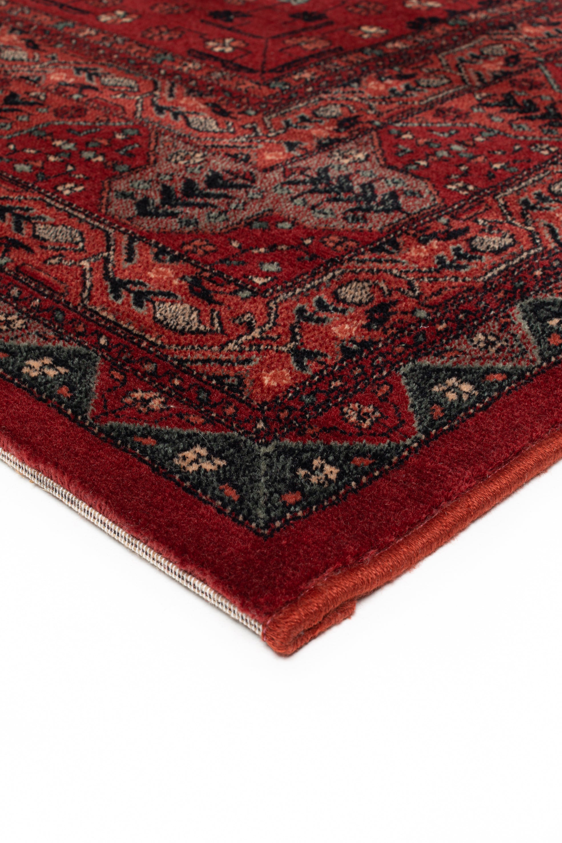 Les tons rouges profonds font de ce tapis une pièce maîtresse idéale pour un salon ou une salle à manger. La structure bordurée apporte de l’équilibre, notamment dans les grands espaces, tandis que le motif central attire le regard. Associez-le à du mobilier en bois pour une ambiance traditionnelle ou à un décor minimaliste pour faire ressortir le motif ethnique.