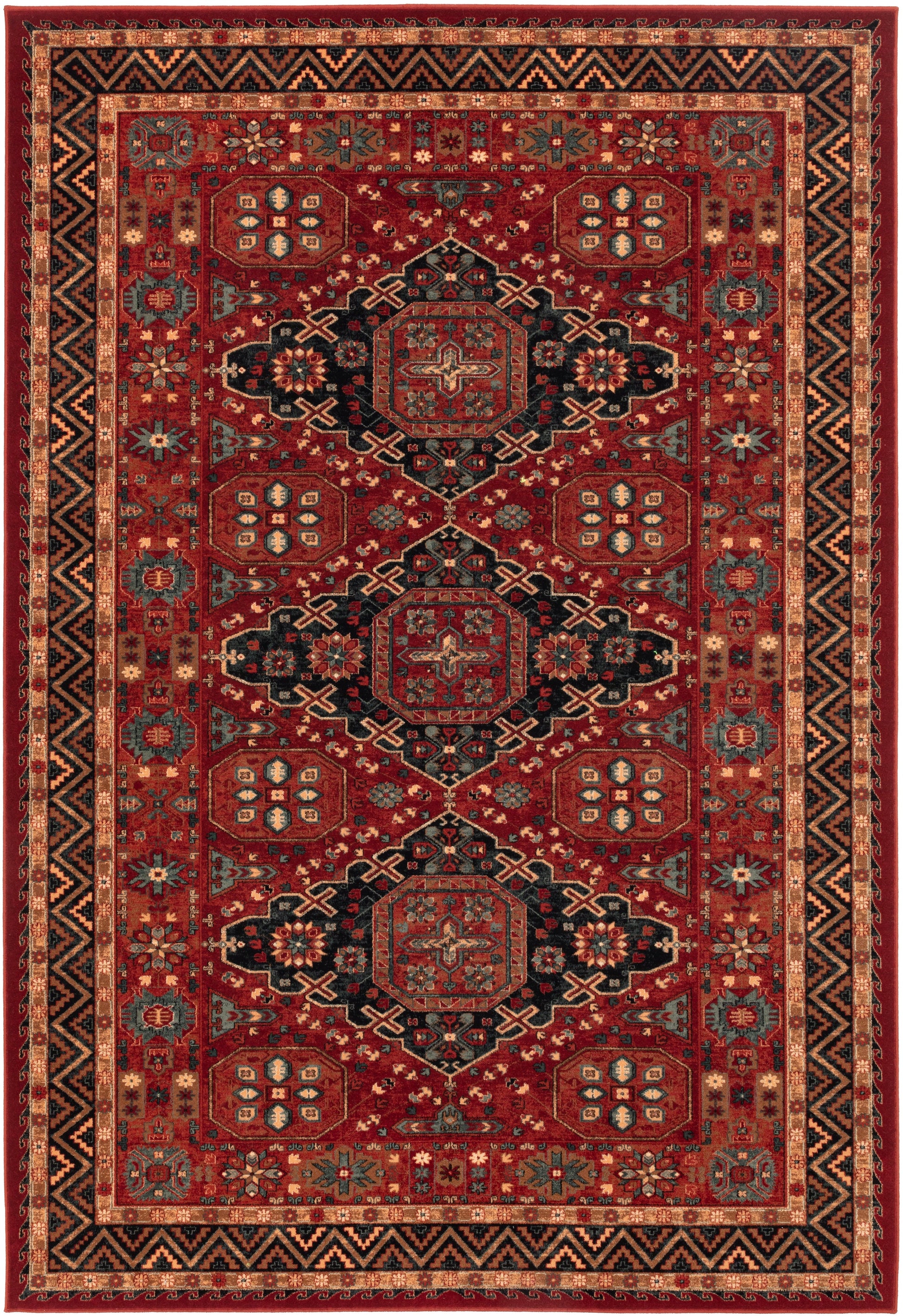 Dans ce modèle, les tons rouges, ivoire et touches de bleu s’harmonisent pour offrir une ambiance élégante et accueillante. Le contraste subtil met en valeur le motif central, parfait pour les intérieurs classiques comme pour les espaces modernes en quête de caractère.