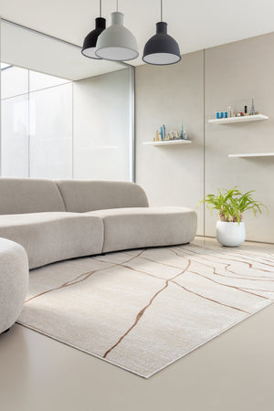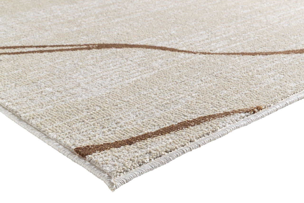 De Jura Carrara Copper combineert zachte beige rust met een stijlvol koperaccent. Het abstracte lijnenspel geeft dit tapijt diepte zonder te overheersen, waardoor het een perfecte aanvulling is voor interieurs die warmte én verfijning uitstralen. De natuurlijke combinatie van beige en koper zorgt voor een uitnodigende sfeer met een luxueuze toets, maar blijft toch tijdloos.