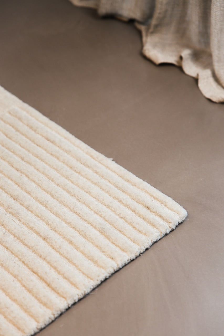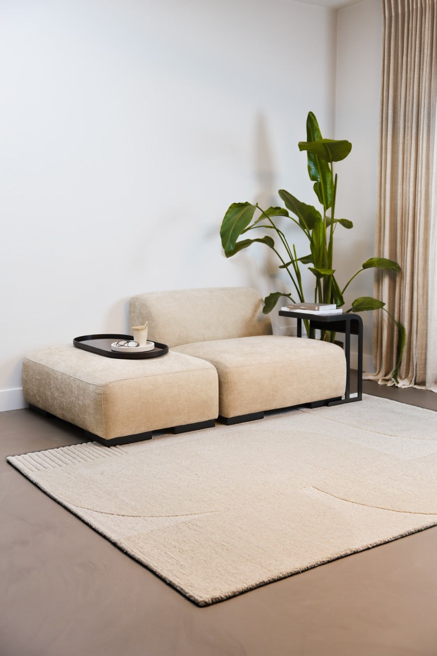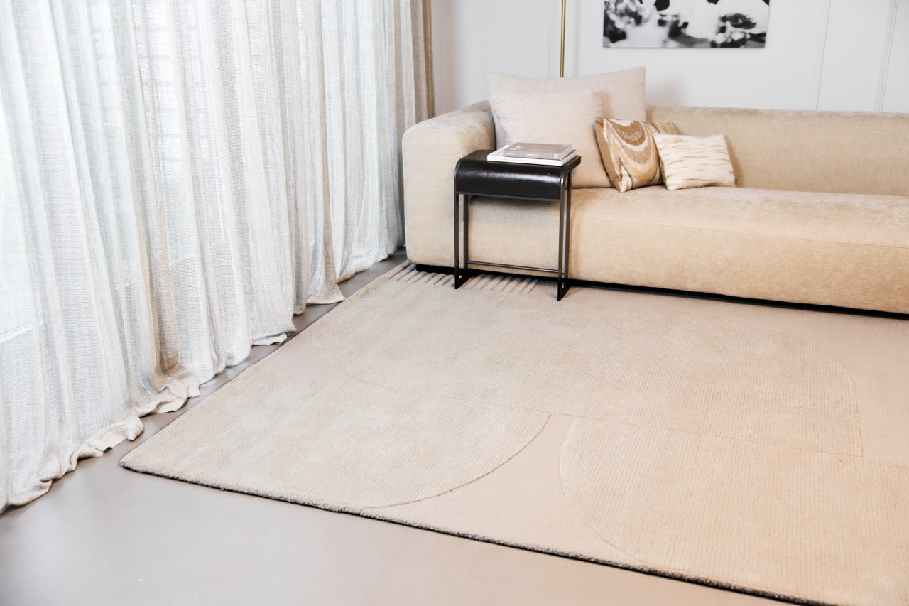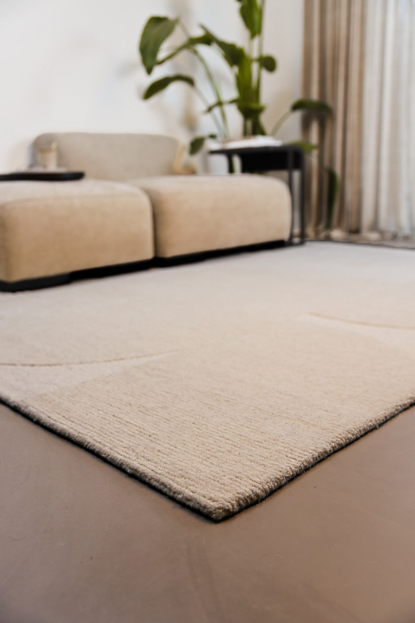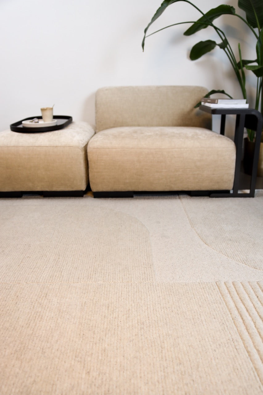 Dankzij de aangename, zachte wol voelt dit tapijt comfortabel aan onder je voeten. Het ton sur ton dessin speelt heel verfijnd met licht en reliëf en past perfect bij Japandi, Scandinavische en minimalistische woonstijlen die toch gezellig mogen blijven.