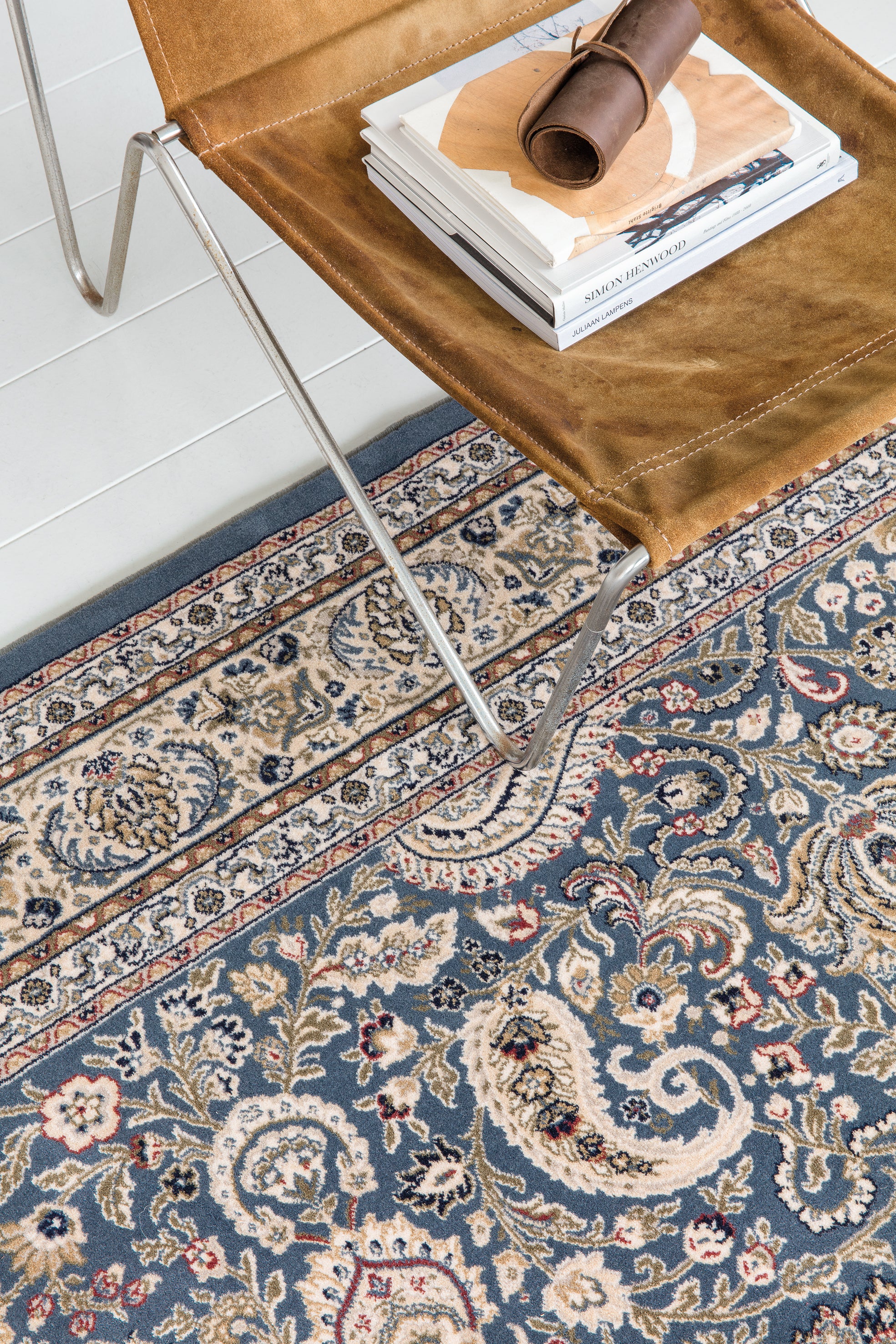 De diepe blauwtinten creëren een verfijnd ankerpunt in elke ruimte. In klassieke interieurs combineert het prachtig met hout, leder en antiek meubilair, terwijl het in moderne omgevingen mooi contrasteert met neutrale muren of minimalistisch design. Dankzij deze veelzijdigheid is het ideaal voor woonkamers, eetkamers of kantoren waar stijl en duurzaamheid even belangrijk zijn.