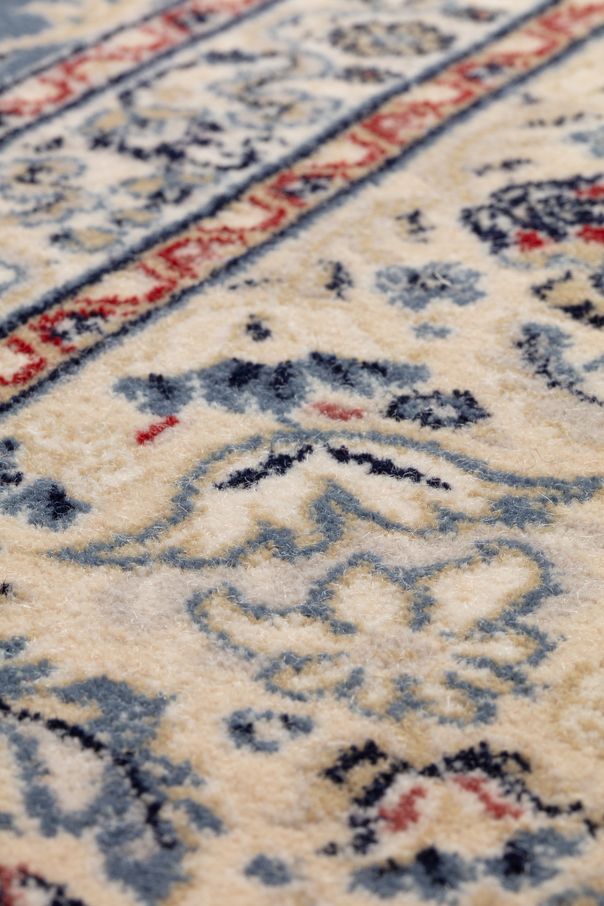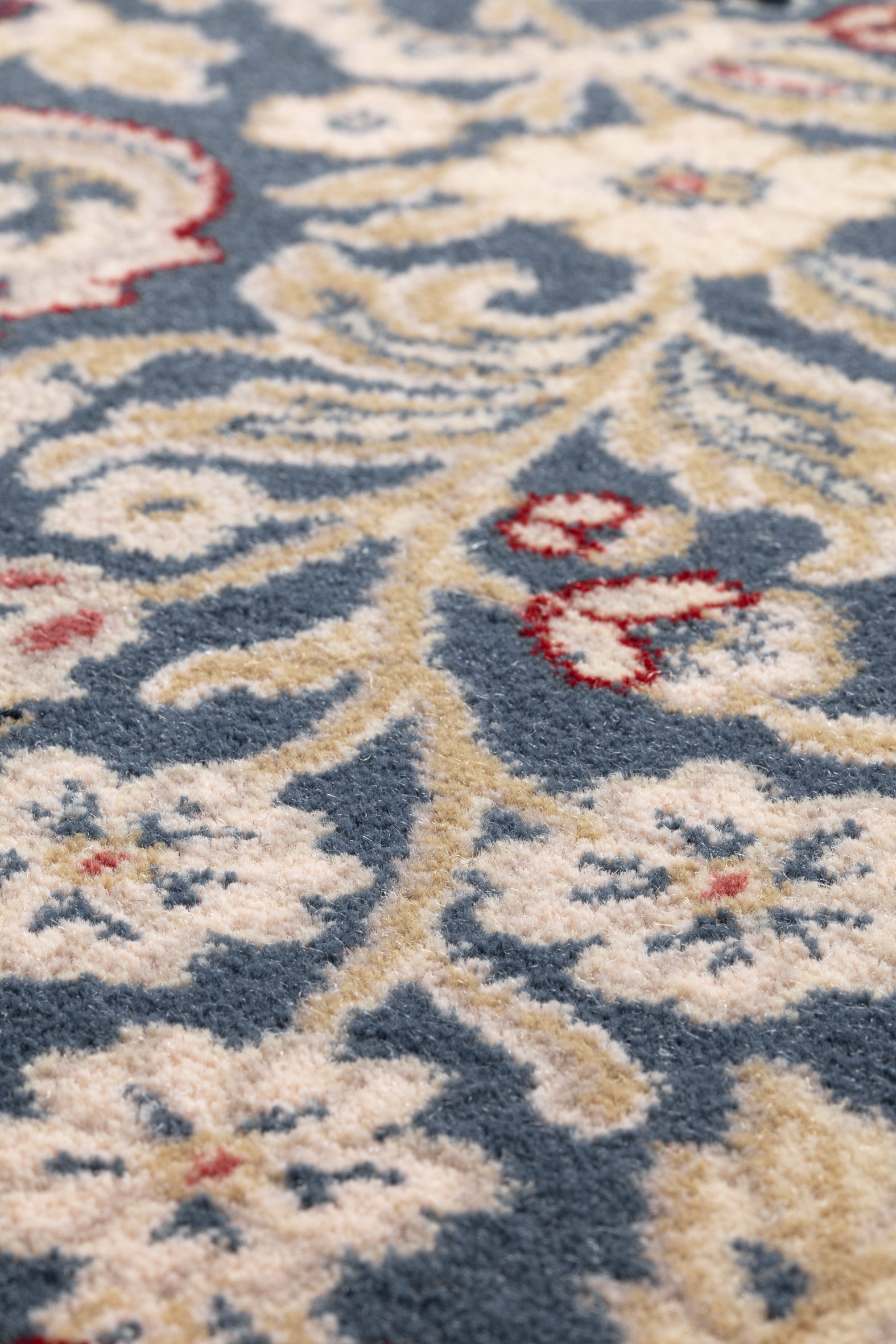 Geweven in België uit 100% wol belichaamt dit vloerkleed de dichte structuur en topkwaliteit van de Royal Classic-collectie. De vollere structuur geeft gewicht en scherpte aan de bloemmotieven, terwijl wol zorgt voor zachtheid, veerkracht en blijvende kleurintensiteit. Een perfecte balans tussen elegantie en dagelijkse bruikbaarheid.