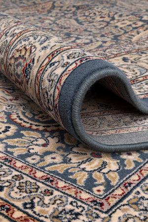 De Royal Classic Diamond 72201.901 heeft een rijkblauwe basis, versierd met een verfijnd bloemendessin. Hoewel geworteld in tijdloze Oriëntaalse traditie, maakt de elegante detaillering dit vloerkleed ook perfect geschikt voor hedendaagse interieurs, waar het diepte, kleur en verfijning toevoegt.